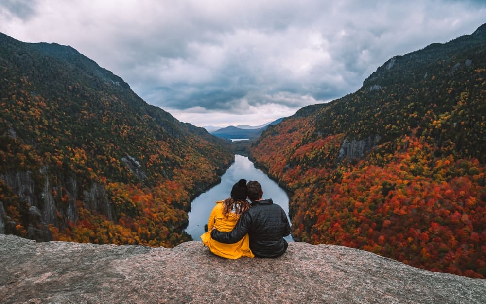 Hiking,Adventure,Couple,Hold,Each,Other,On,Top,Of,Mountain
